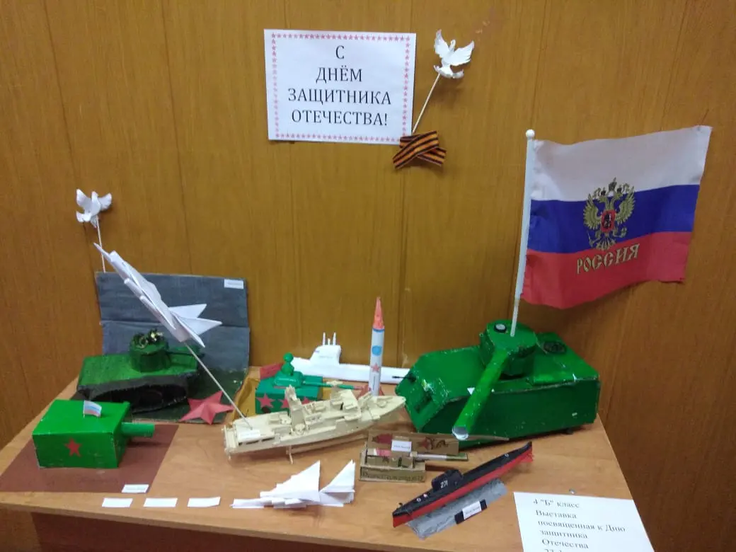В преддверии Дня защитника Отечества в 4 Б классе прошел классный час «23 февраля – День защитника Отечества». В начале мероприятия ребята узнали, откуда появилась традиция отмечать праздник всех мужчин. Ребята с Конфендрат Т.А. ( классный руководитель) организовали выставку посвященную 23 февраля!