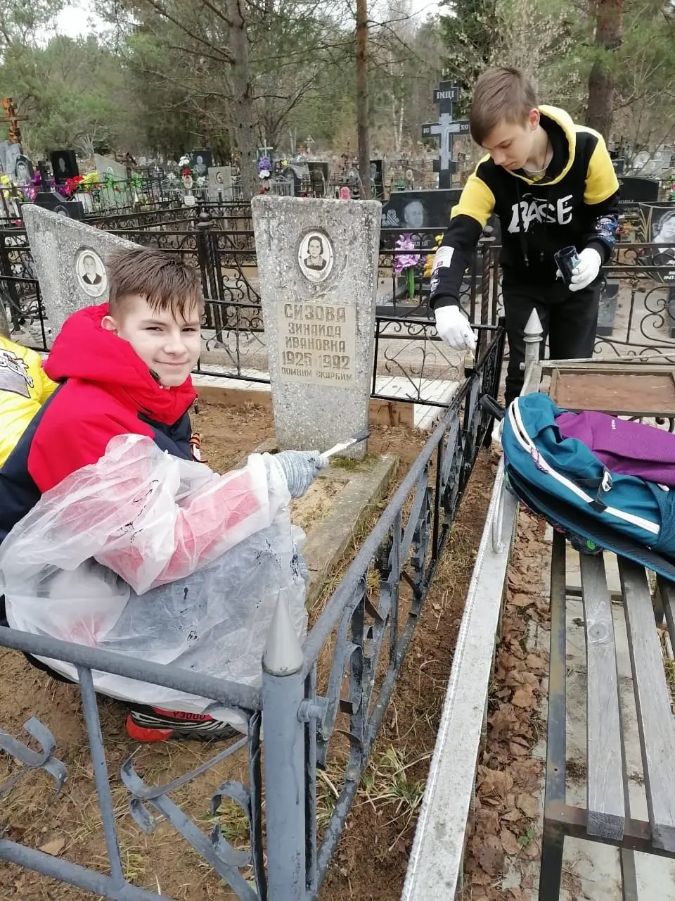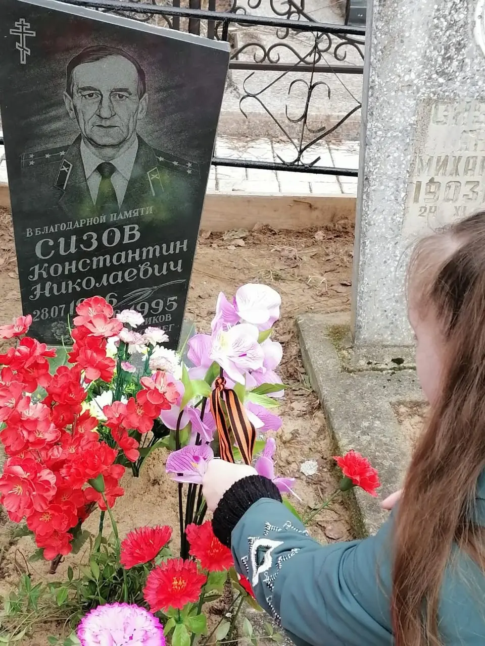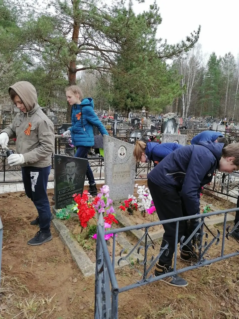 Помимо уборки, ребята покрасили ограду и возложили цветы с георгиевскими ленточками. Классный руководитель, Бакова Светлана Николаевна, рассказала о военном пути и педагогической деятельности Константина Николаевича.