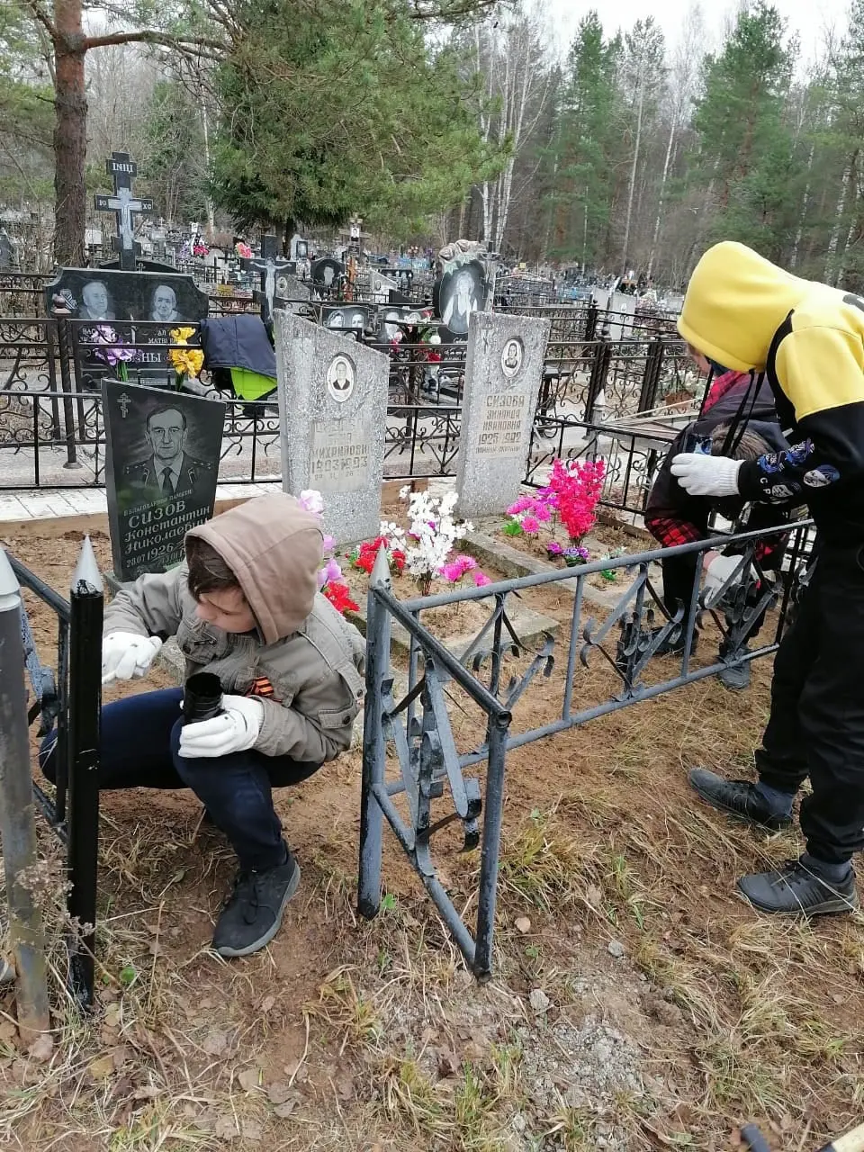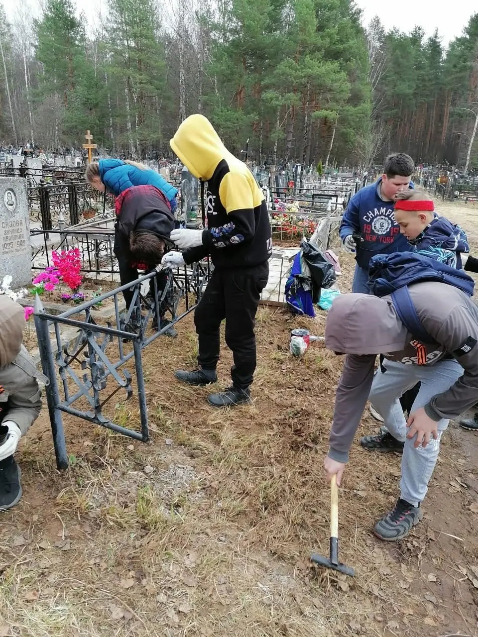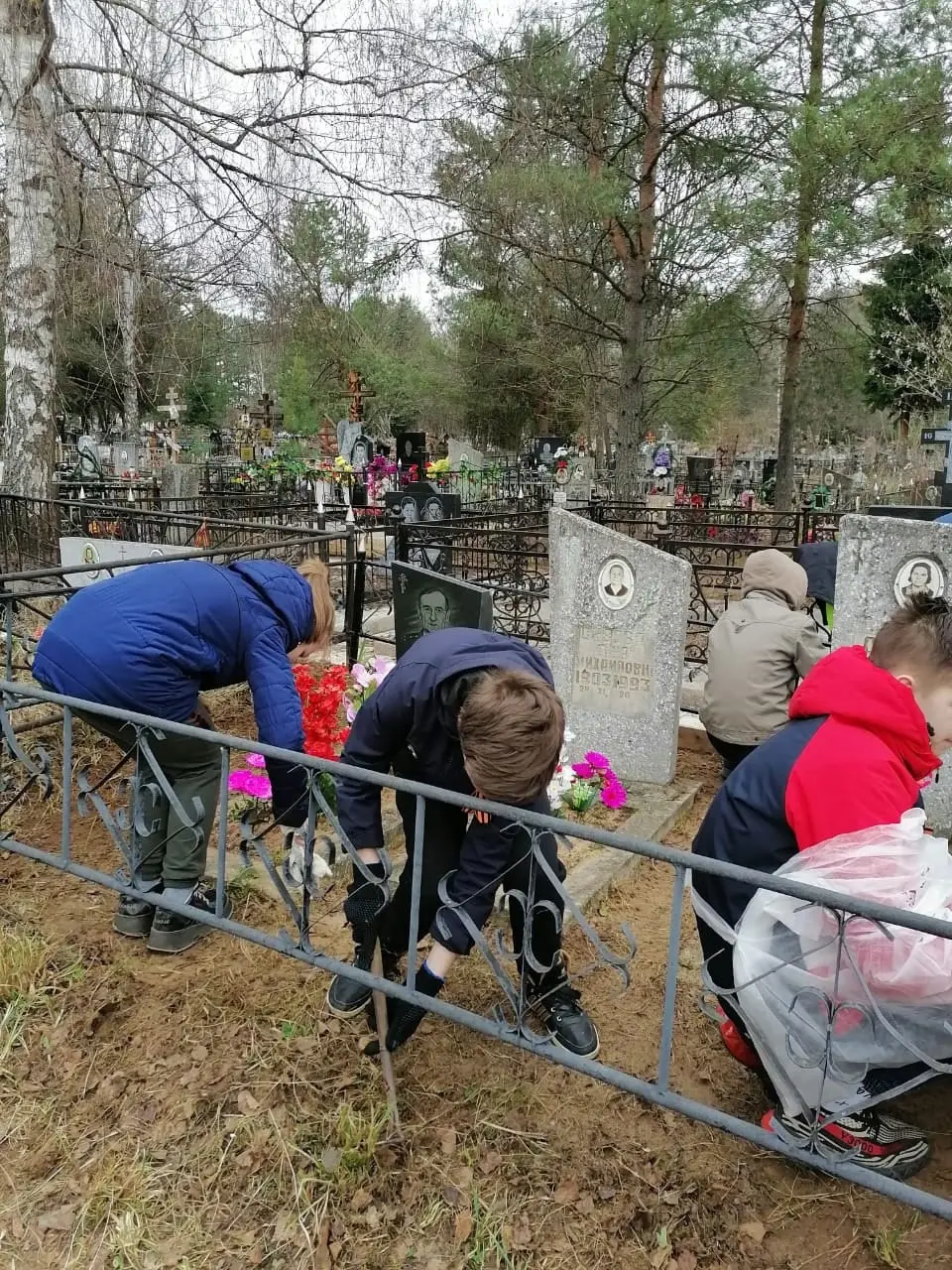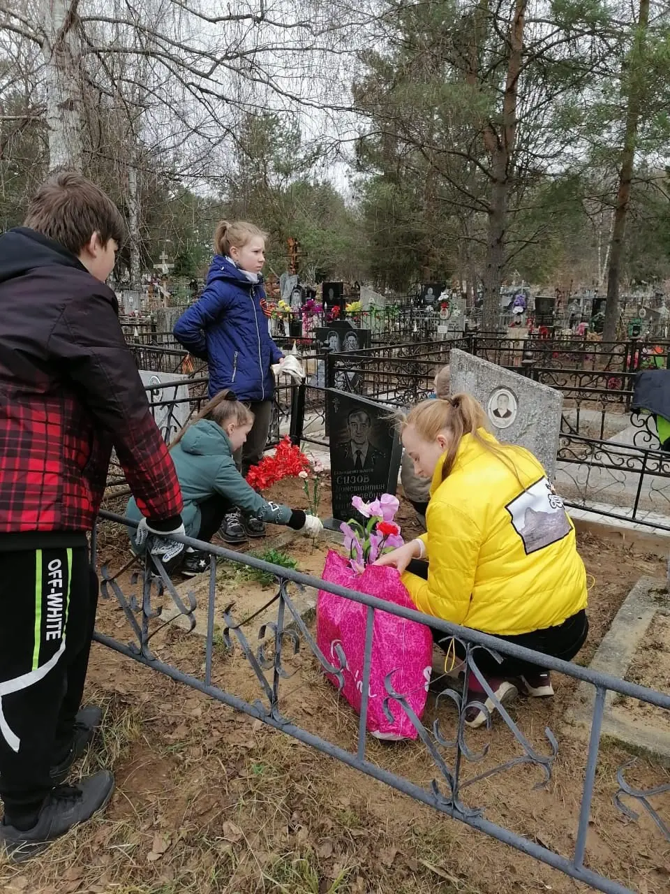 Помимо уборки, ребята покрасили ограду и возложили цветы с георгиевскими ленточками. Классный руководитель, Бакова Светлана Николаевна, рассказала о военном пути и педагогической деятельности Константина Николаевича.