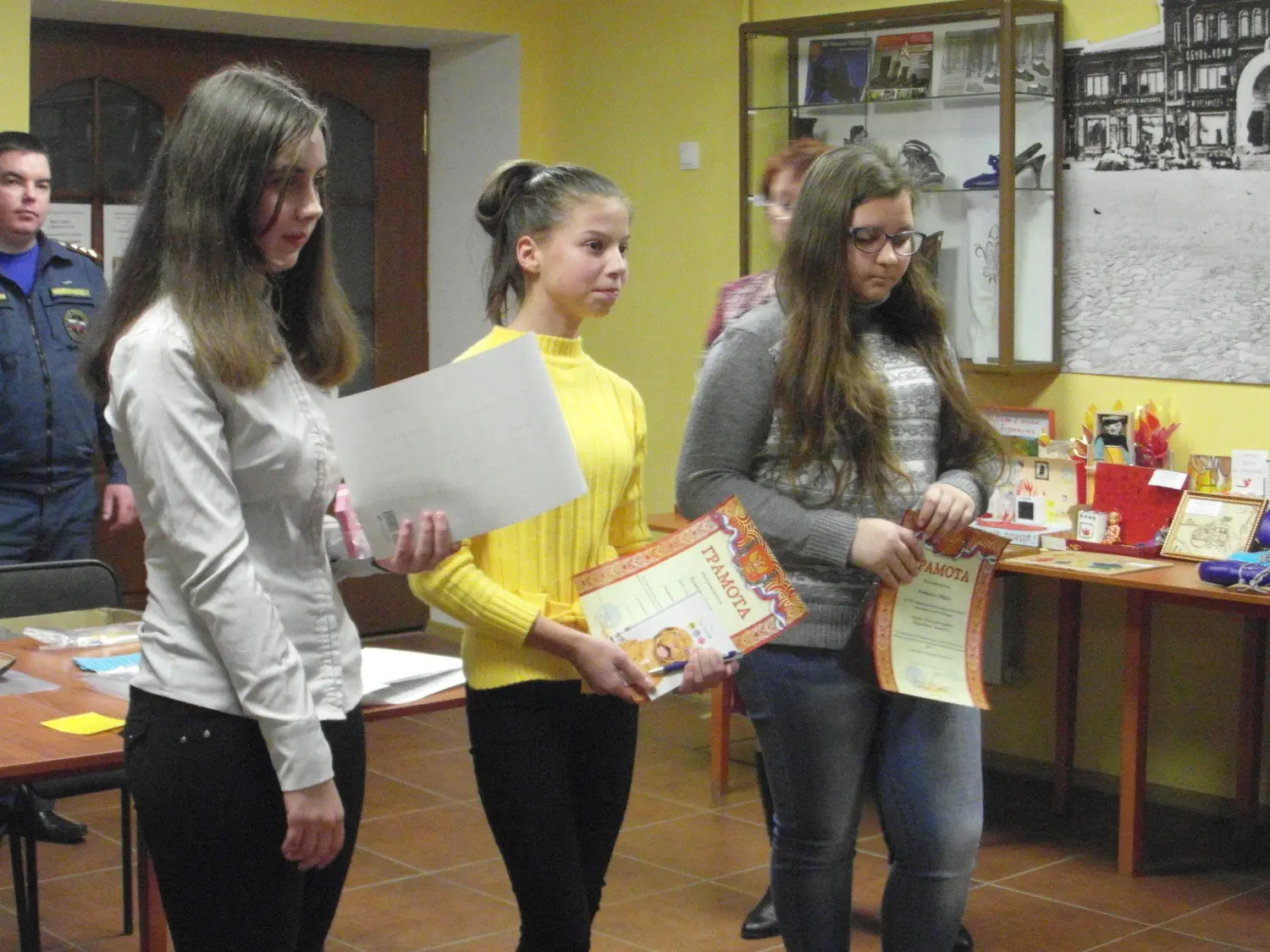 Награждение победителей месячника ГОЧС admin Фотогалерея 23 ноября, 201722 ноября, 2020 Галахова Мария 8-а класс — 3 место в номинации «Пожарная безопасность», Комкова Ольга 9-б класс — поощрительный приз в номинации «Безопасность на воде»