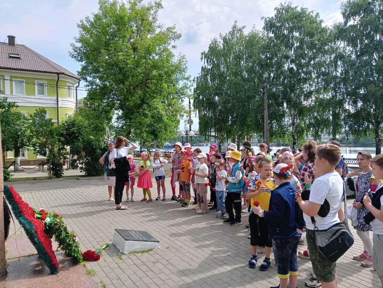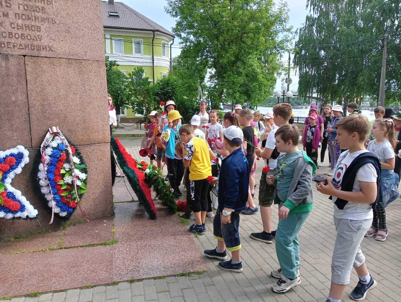 В этот день ребятам из нашего пришкольного лагеря мы ещё раз напомнили о событиях той страшной войны. А после, дети, вместе с воспитателями и вожатыми, возложили цветы у Обелиска и почтили минутой молчания память воинов-защитников, павших за Родину на полях сражений.