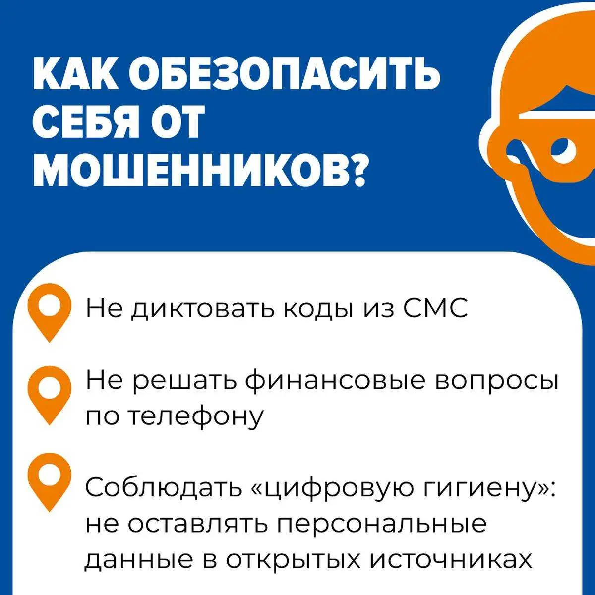 — не диктовать коды из смс; все коды, пароли, которые поступают вам в СМС ТОЛЬКО для вас, это КЛЮЧ к вашим личным данным, деньгам, аккаунтам и т.п.;
