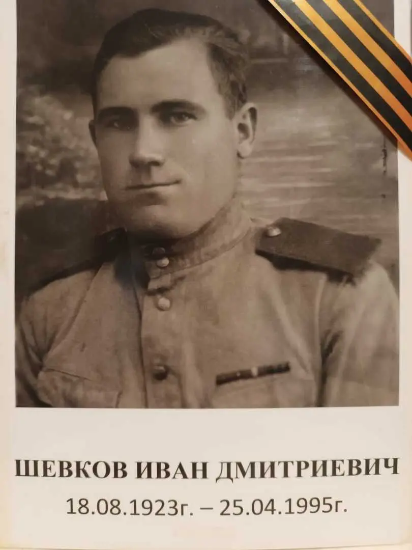 Шевков Иван Дмитриевич (1923 г. — 1995 г.) — красноармеец, связист. Прошëл боевой путь от родной Калининской области до Кëнигсберга (ныне Калининграда).