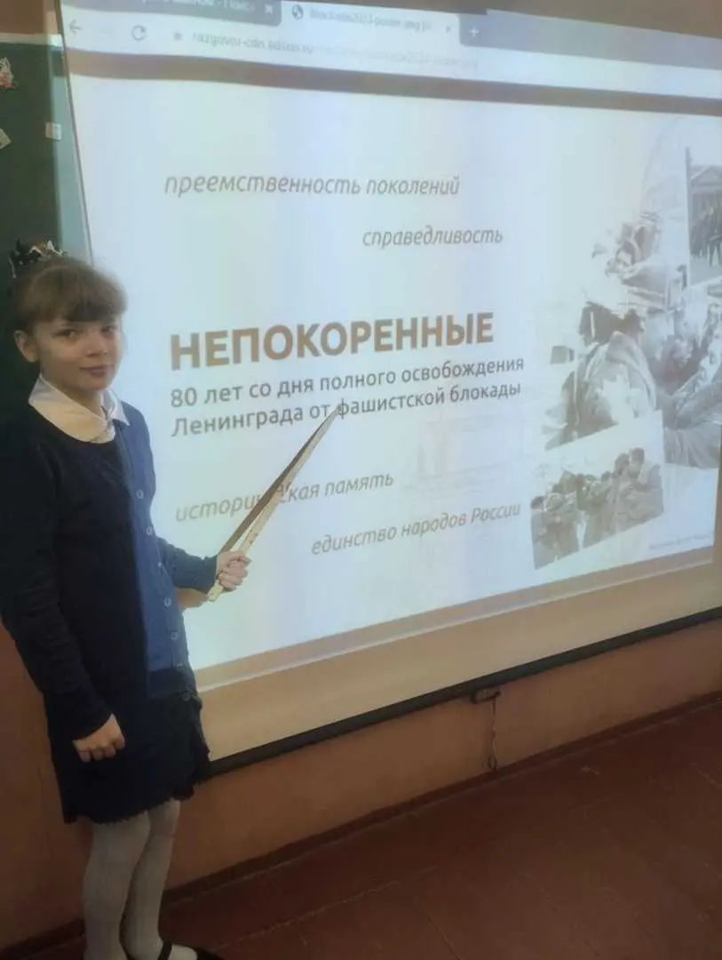 На занятии ребята познакомились с историей блокады Ленинграда, увидели записи воспоминаний очевидцев и участников тех событий, а также узнали, что самая низкая норма хлеба пришлась на декабрь 1941 года — кусочек чёрного хлеба для детей, который выдавался в блокадном Ленинграде имел массу 125 граммов в сутки.