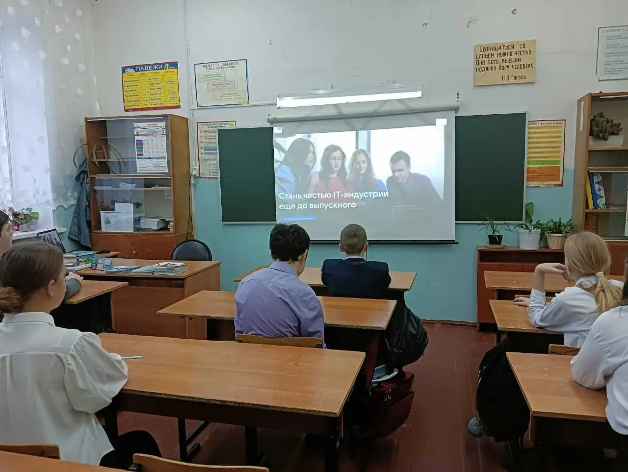 В рамках занятия ребята обсудили со своими классными руководителями профессии в области цифровых и информационных технологий. Учащиеся узнали, что цифровые технологии стремительно развиваются и помогают существенно улучшать различные области, например, медицину, образование, судоходство, строительство, креативную индустрию и многое-многое другое.