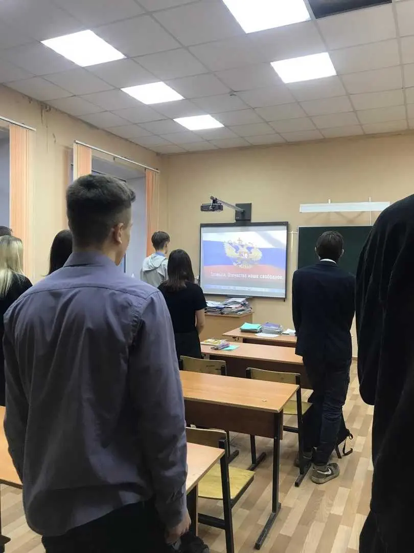 По традиции, занятия в классах начались с исполнения Гимна РФ.