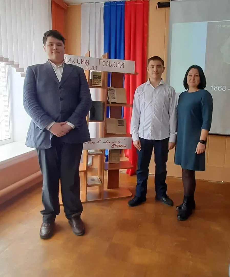 К 155-летию со дня рождения М.Горького в гимназии «Логос» состоялся городской конкурс среди учащихся 8-10 классов. Нашу школу представляли ученики 8«А» класса — Ибодов Ярослав и Кадошников Олег (учитель русского языка и литературы Кизерова Е.Н.).