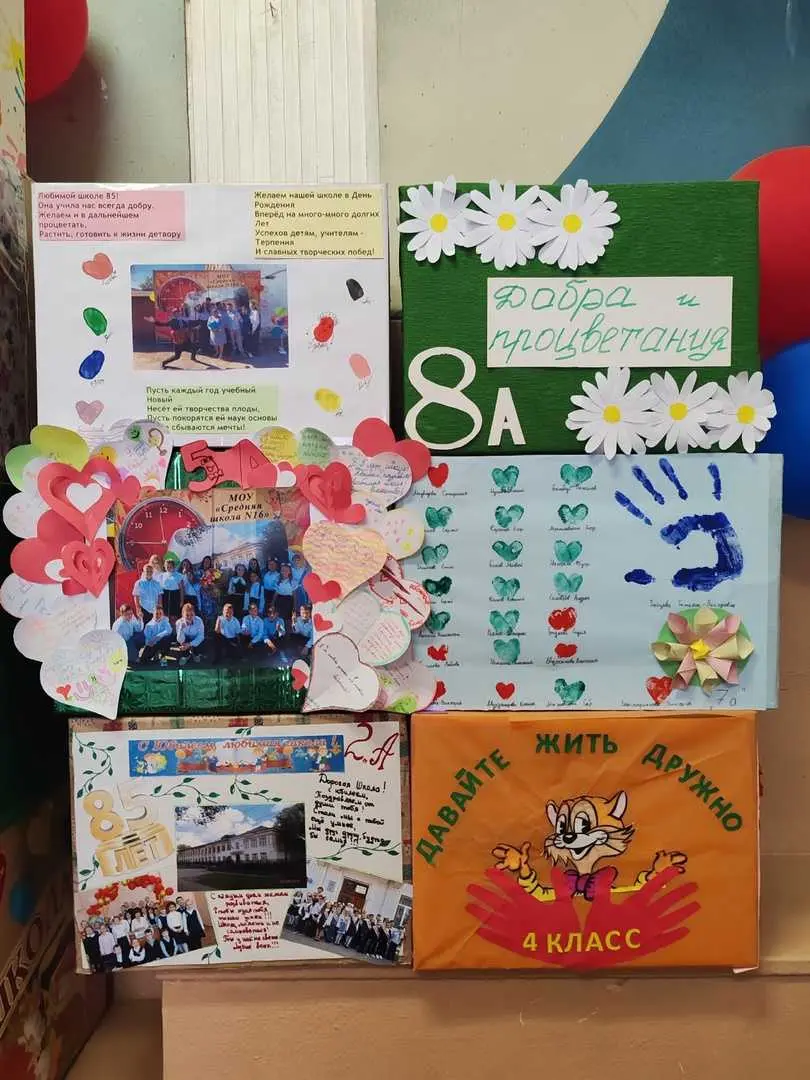 В преддверии Юбилея школы, на втором этаже, учащиеся и их классные руководители возвели «Стену Дружбы», кирпичиками для которой послужили коробки, украшенные ребятами!Получилась замечательная красочная стена! 🎨