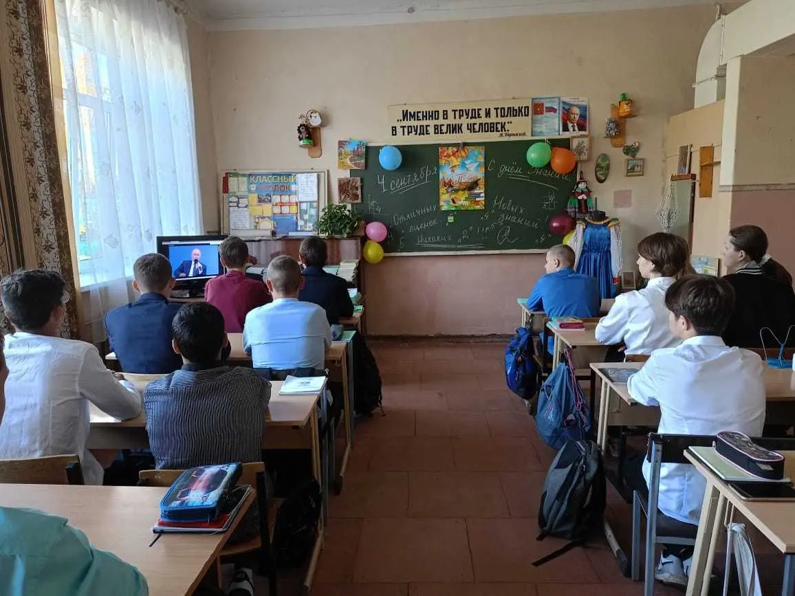 Затем ребята отправились на занятие «Разговоры о важном», посвященном Дню Знаний. Начались занятия с просмотра видеопоздравления президентом В.В. Путиным. День знаний — добрый и всенародный праздник, связанный с новыми шагами развития страны и человечества.
