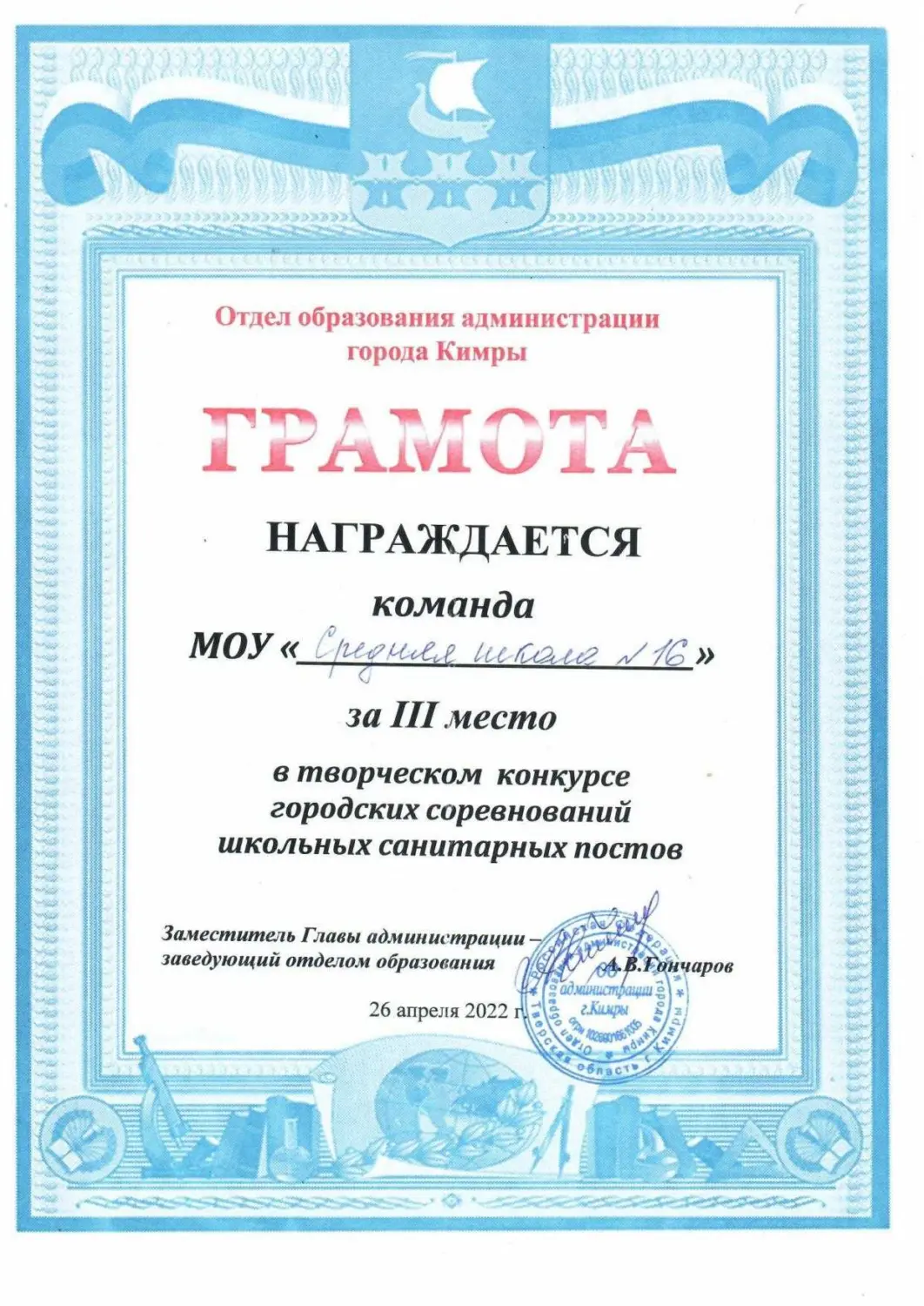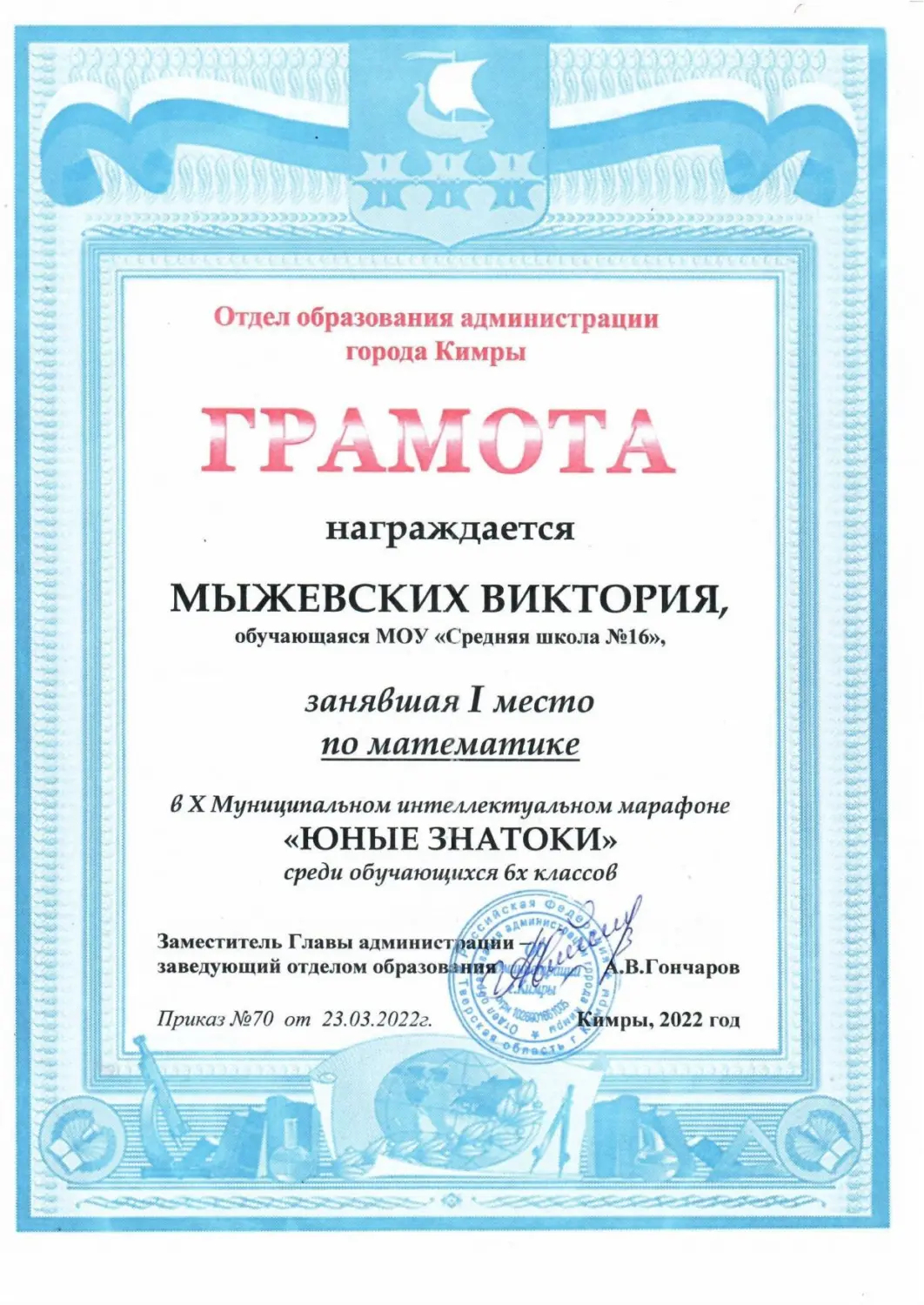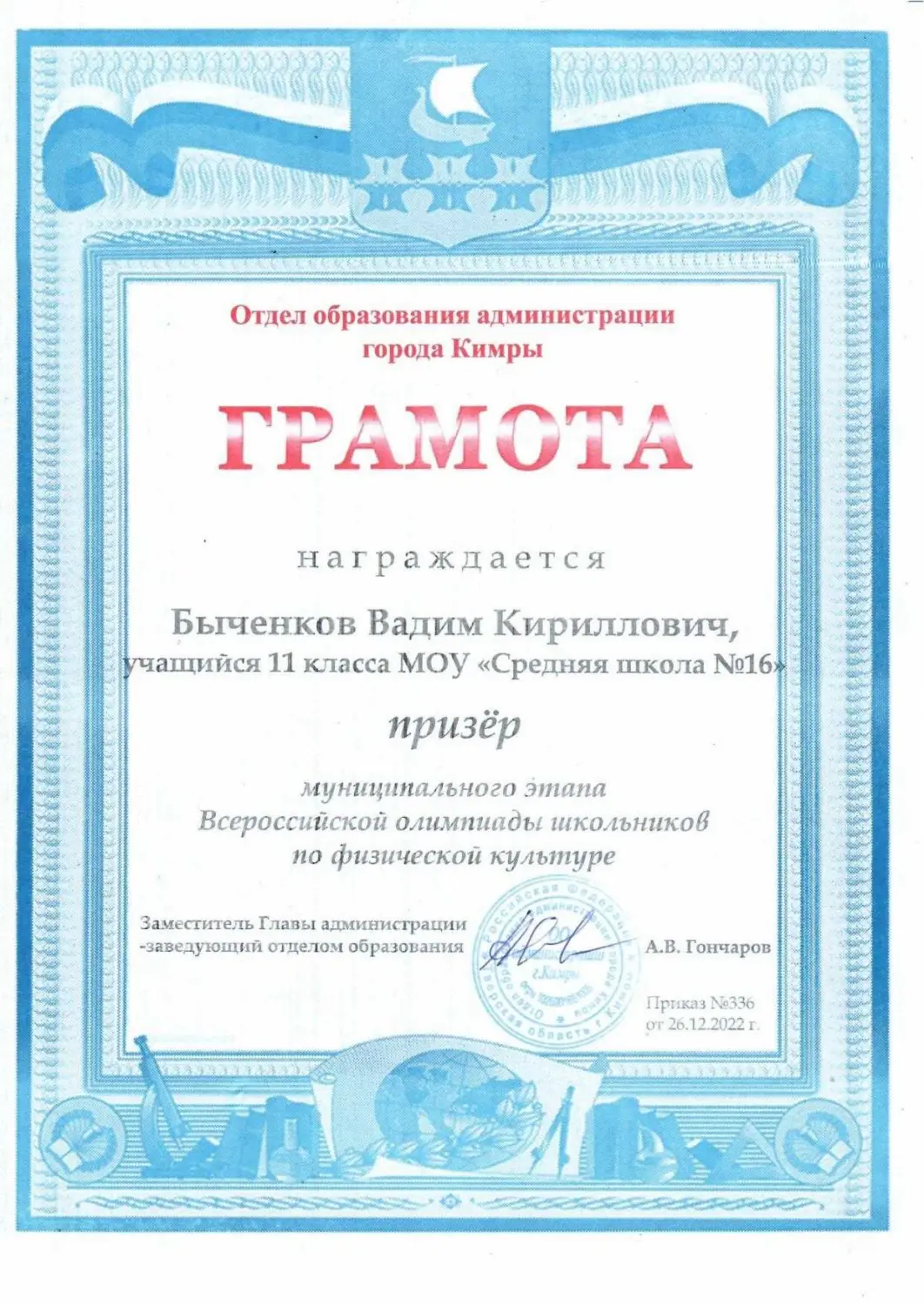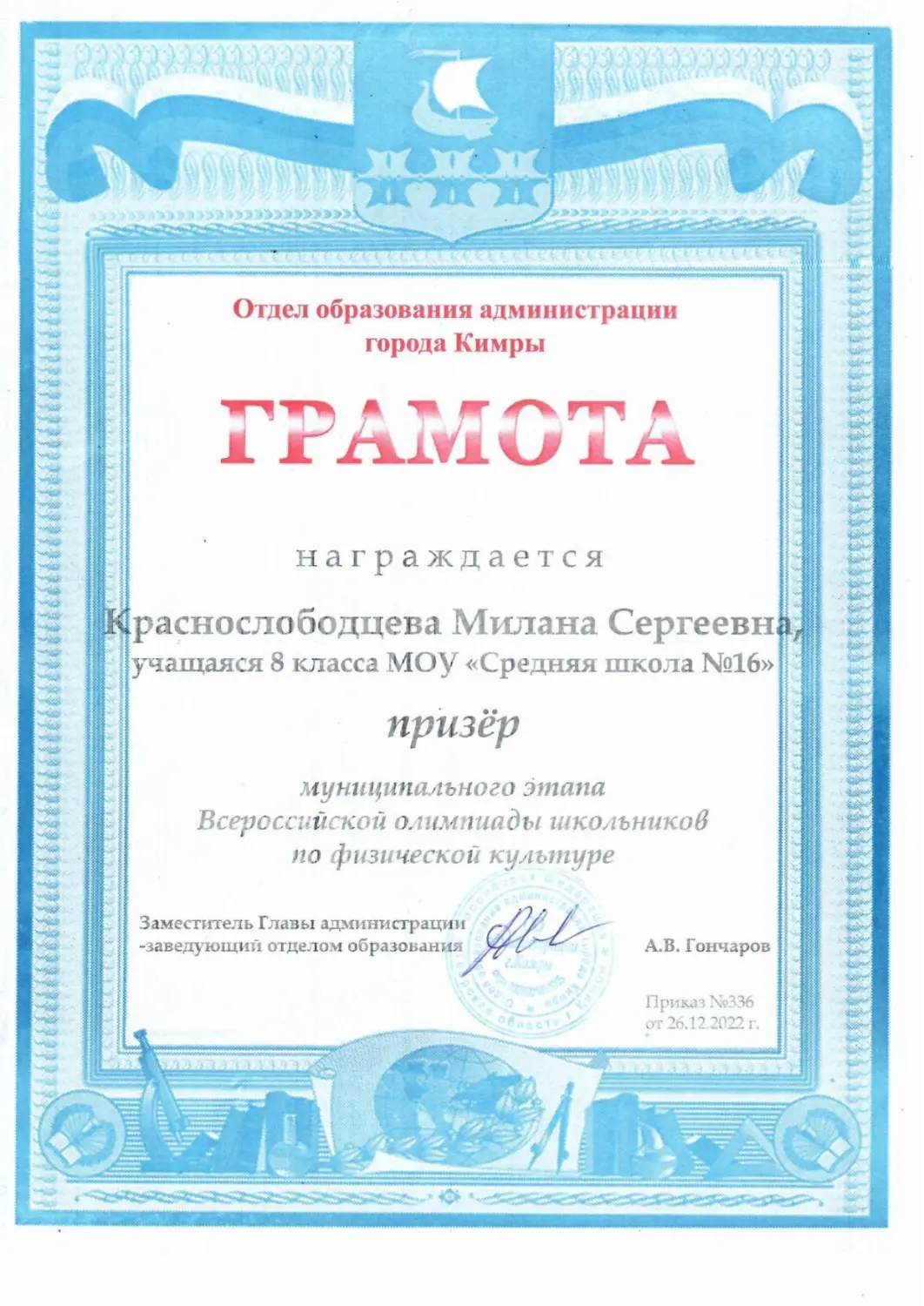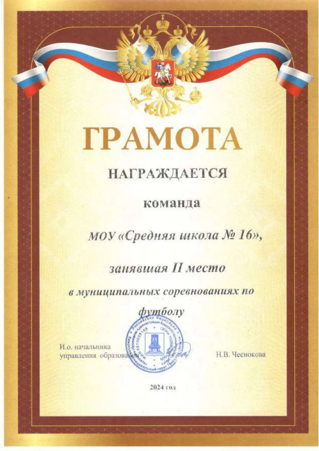 Подписано: Шемарова Татьяна Анатольевна Должность: Исполняющий обязанности директора Организация: МУНИЦИПАЛЬНОЕ ОБЩЕОБРАЗОВАТЕЛЬНОЕ УЧРЕЖДЕНИЕ "СРЕДНЯЯ ШКОЛА №16" Действителен с: 04 марта 2025 г. 12:17:40 Действителен до: 28 мая 2026 г. 12:17:40 Серийный номер: 5BD73ADA52A94265CB2AFA05BCE4D021