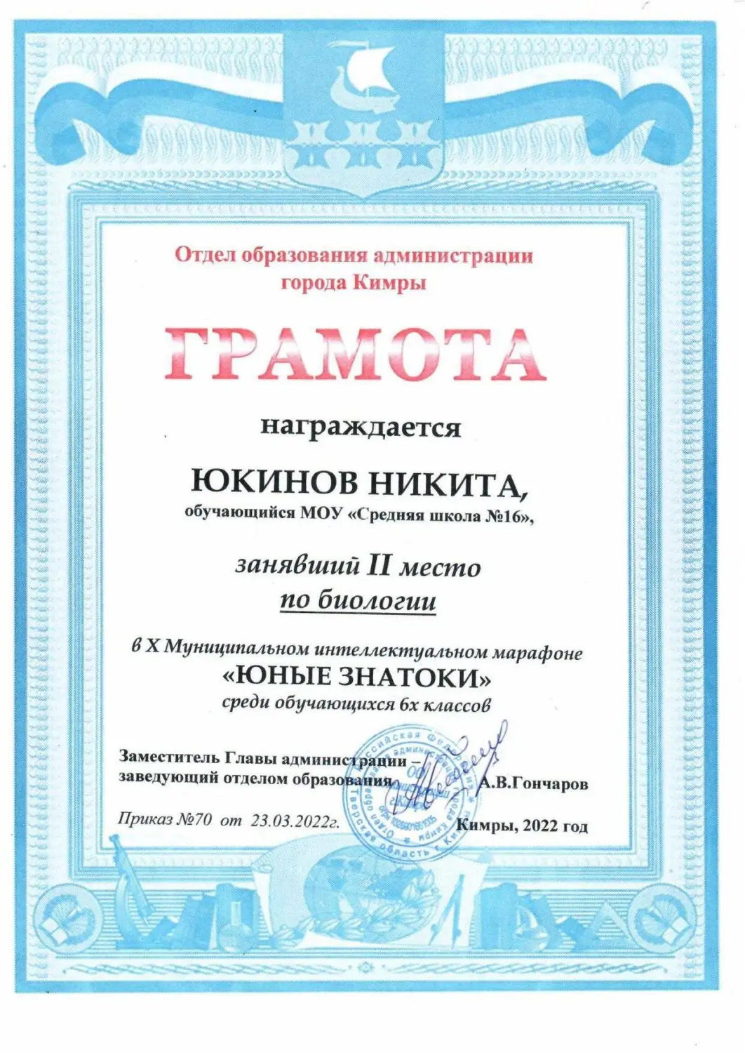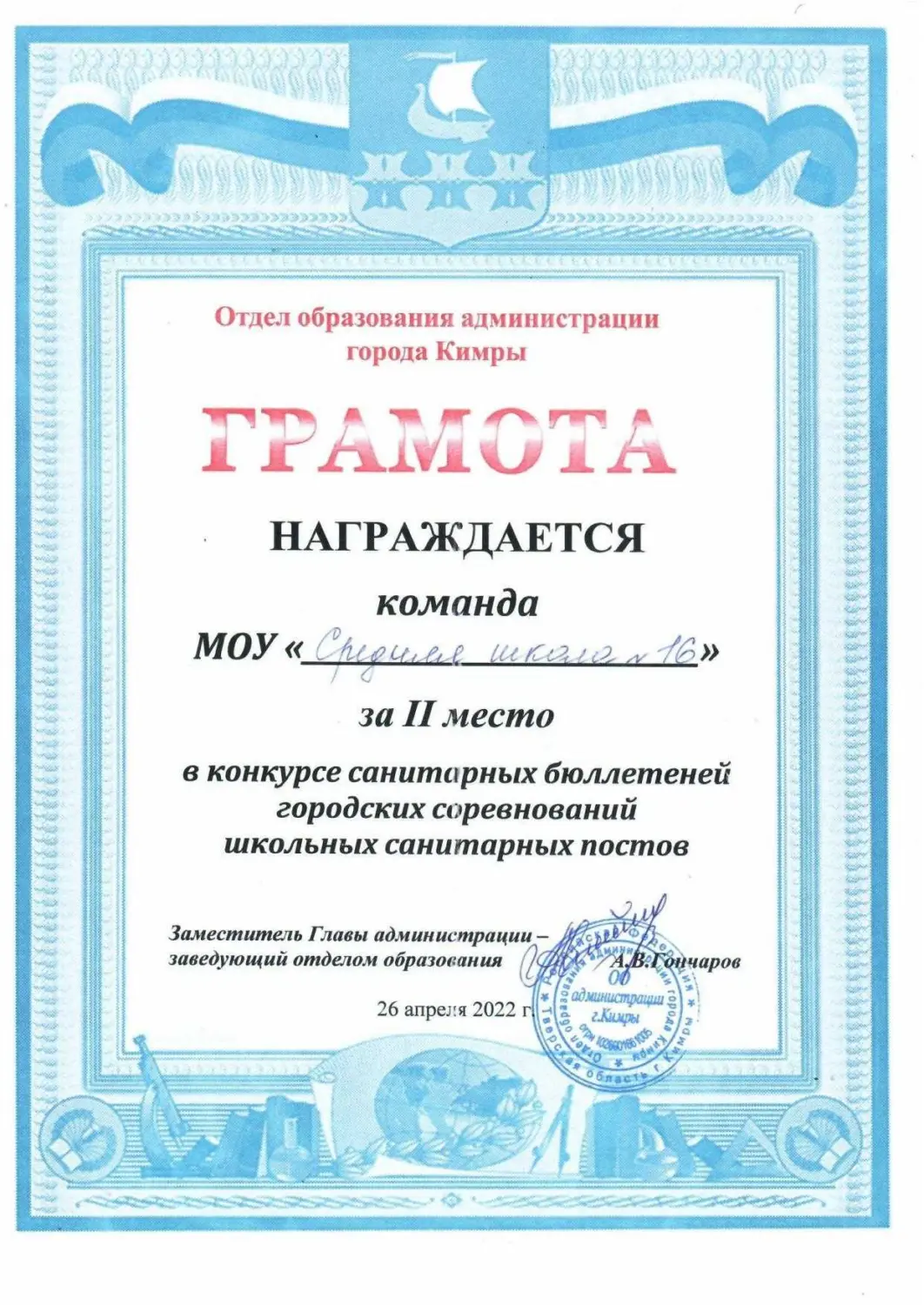 Подписано: Абакумова Наталья Валентиновна Должность: Директор Организация: МУНИЦИПАЛЬНОЕ ОБЩЕОБРАЗОВАТЕЛЬНОЕ УЧРЕЖДЕНИЕ "СРЕДНЯЯ ШКОЛА №16" Действителен с: 27 февраля 2023 г. 11:01:00 Действителен до: 22 мая 2024 г. 11:01:00 Серийный номер: 73866D8EA00B1FBEE3D7B338584B93BC